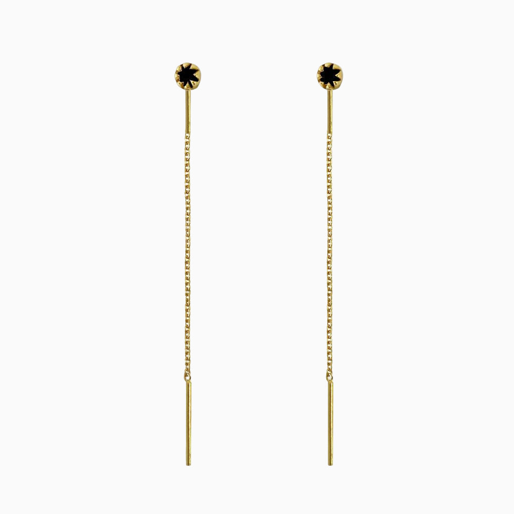 Doortrek oorbellen met één klein onyx zirkonia steentje.
