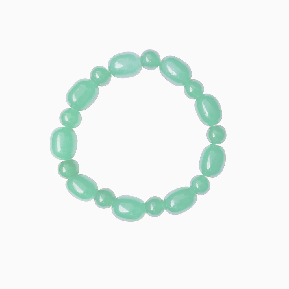 Speelse kralen armband in een trendy mint groene kleur. De armband is gemaakt van resin, wat zorgt voor een lichte, comfortabele pasvorm en een luxe uitstraling. Perfect om solo te dragen of te combineren met andere armbanden voor een speelse en modieuze look.